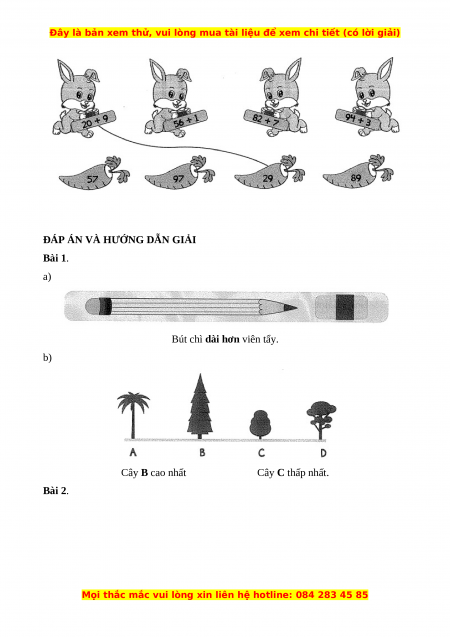 Bút chì dài hơn viên tẩy. b) Cây B cao nhất Cây C thấp nhất. Bài 2.