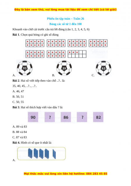 Bài 1. Chọn quả bóng có ghi số đúng A. B. C.