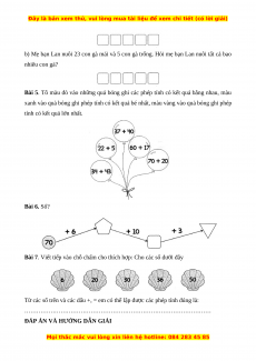 xanh vào quả bóng ghi phép tính có kết quả bé nhất, màu vàng vào quả bóng ghi phép