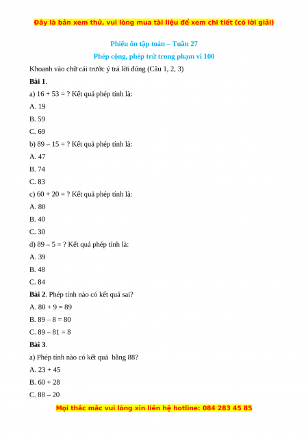 Phiếu ôn tập toán – Tuần 27