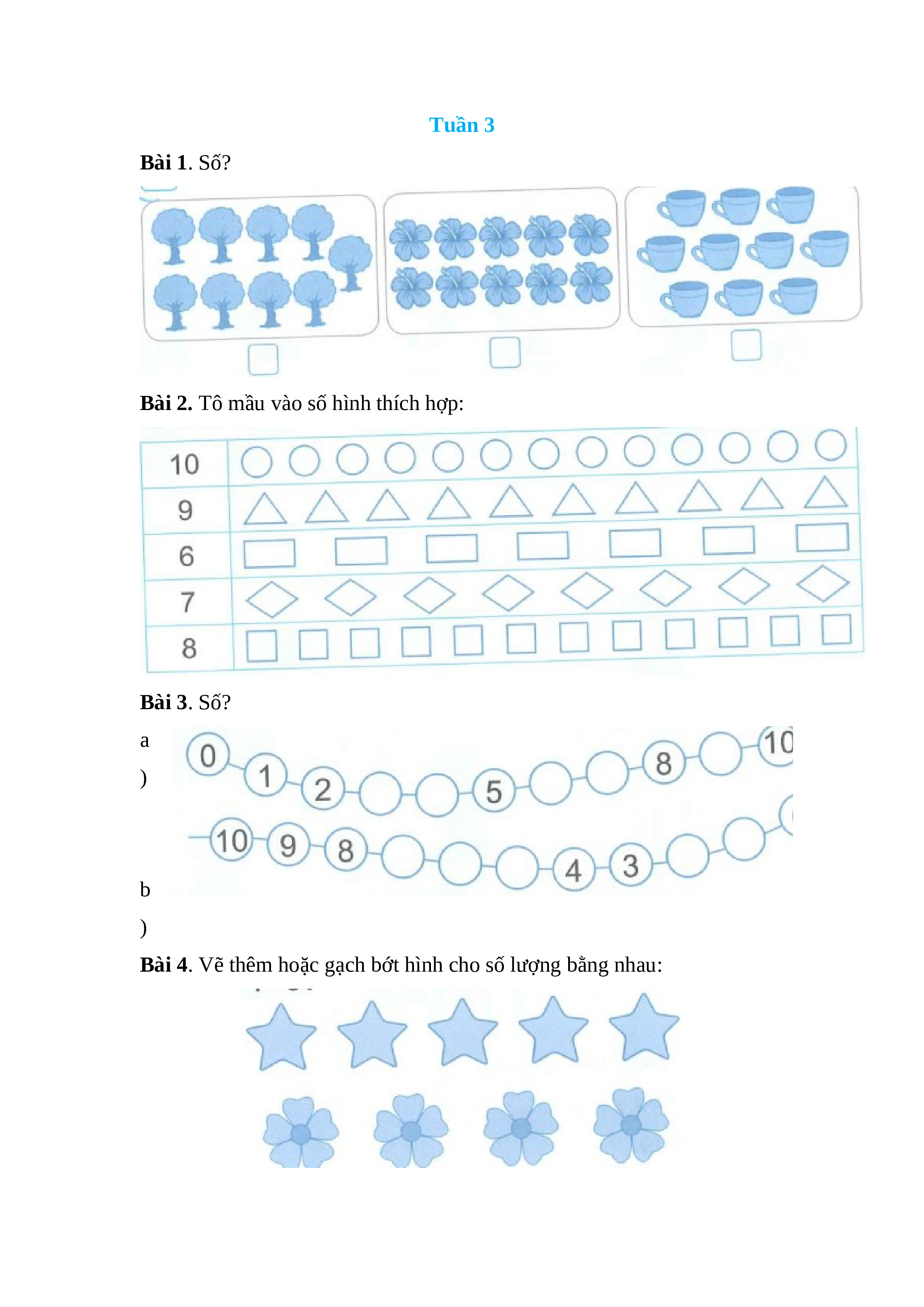 Bài 2. Tô mầu vào số hình thích hợp: Bài 3. Số?
