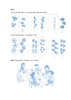 Bài 4. Vẽ thêm hoặc gạch bớt hình cho số lượng bằng nhau: Bài 5.
