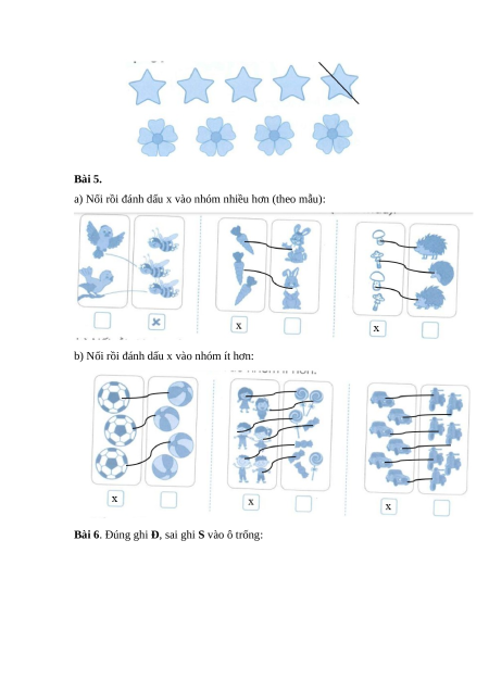 a) Nối rồi đánh dấu x vào nhóm nhiều hơn (theo mẫu):
