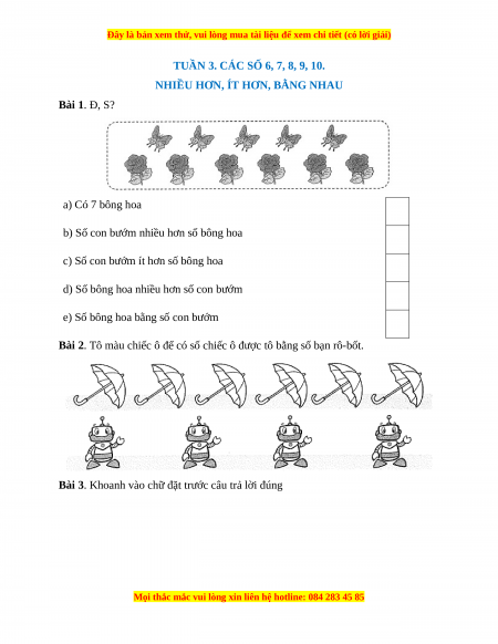 TUẦN 3. CÁC SỐ 6, 7, 8, 9, 10.