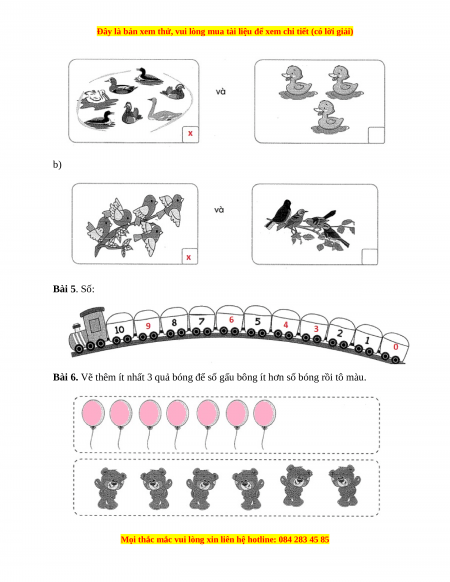 Bài 4. Đánh dấu × vào bức tranh có số con vật nhiều hơn a) b)
