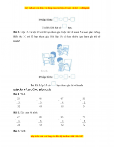 Biết lớp 1C có 35 bạn tham gia. Hỏi lớp 1A có bao nhiêu bạn tham gia thi vẽ tranh? Trả lời: Lớp 1A có