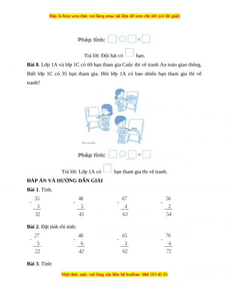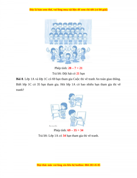 Bài 8. Lớp 1A và lớp 1C có 69 bạn tham gia Cuộc thi vẽ tranh An toàn giao thông.
