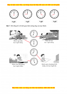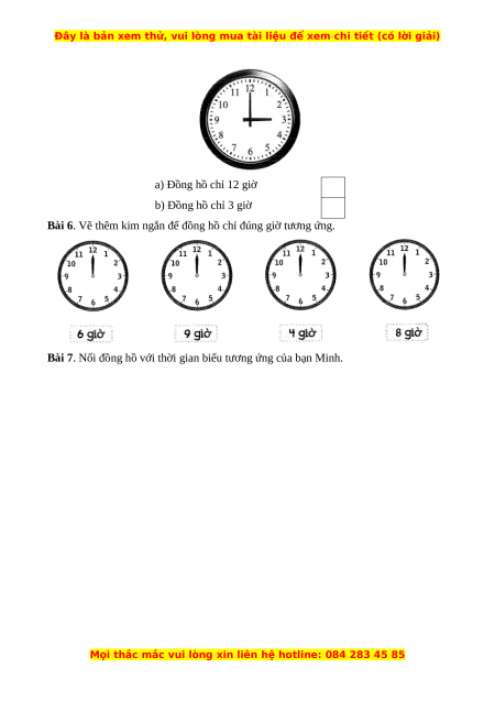 Bài 6. Vẽ thêm kim ngắn để đồng hồ chỉ đúng giờ tương ứng: