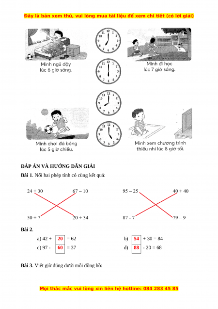 Bài 1. Nối hai phép tính có cùng kết quả: Bài 2. a) 42 + 20 = 62 b) 54 + 30 = 84 c) 97 - 60 = 37 d) 88 - 20 = 68
