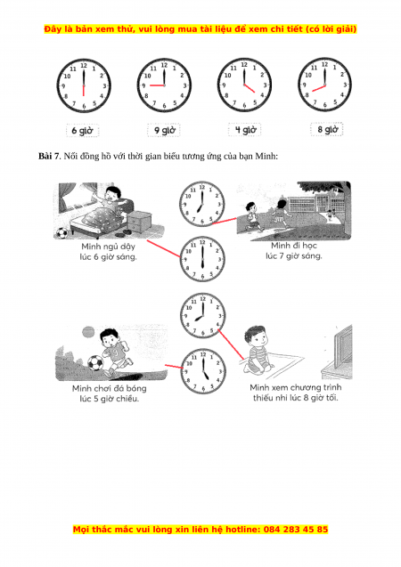 Bài 4. Nối mỗi đồng hồ với giờ thích hợp: