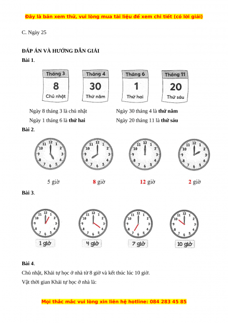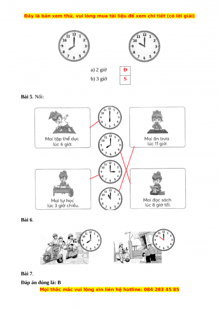 a) 2 giờ Đ b) 3 giờ S Bài 5. Nối: Bài 6. Bài 7. Đáp án đúng là: B