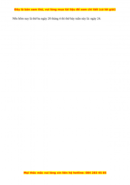 Nếu hôm nay là thứ ba ngày 20 tháng 4 thì thứ bảy tuần này là: A. Ngày 23 B. Ngày 24