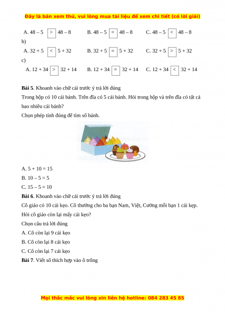 Khoanh vào chữ cái trước ý trả lời đúng (Câu 1, 2) Bài 1. a) Chọn câu đúng