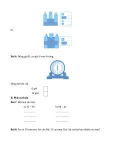 Bài 7. Đặt tính rồi tính: a) 32 + 56 b) 98 – 41 ………….. …………… ………….. …………… ………….. ……………