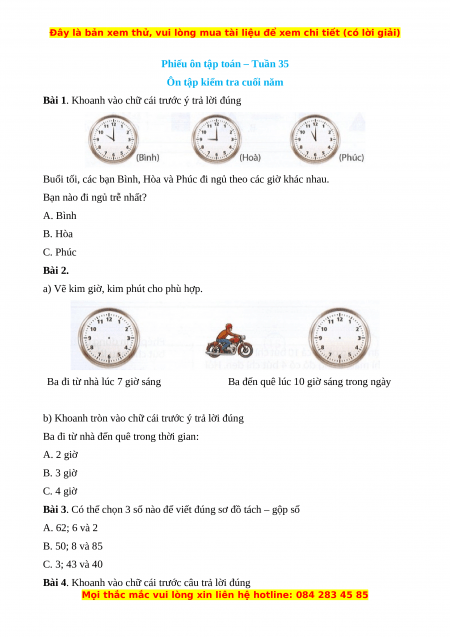 Phiếu ôn tập toán – Tuần 35