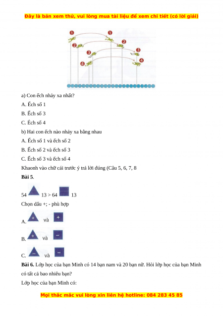 Bài 6. Lớp học của bạn Minh có 14 bạn nam và 20 bạn nữ. Hỏi lớp học của bạn Minh
