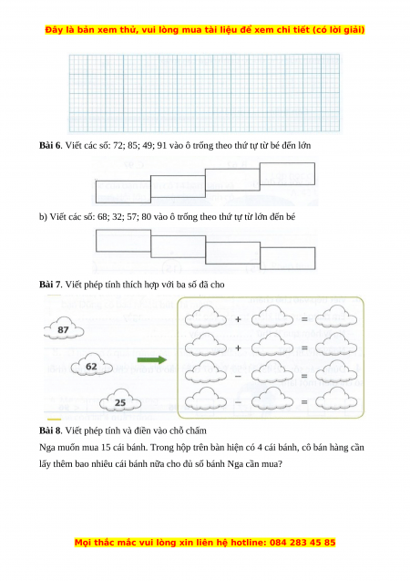 Bài 6. Viết các số: 72; 85; 49; 91 vào ô trống theo thứ tự từ bé đến lớn