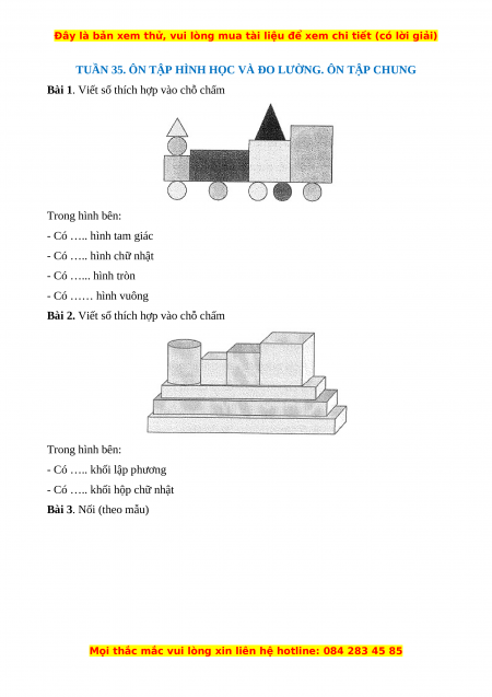 TUẦN 35. ÔN TẬP HÌNH HỌC VÀ ĐO LƯỜNG. ÔN TẬP CHUNG