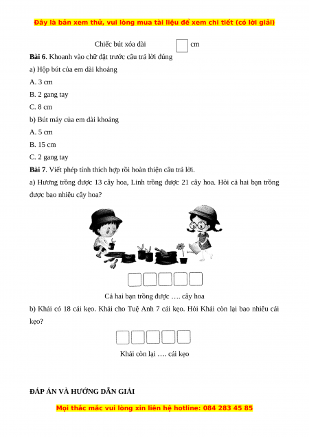 Bài 7. Viết phép tính thích hợp rồi hoàn thiện câu trả lời.