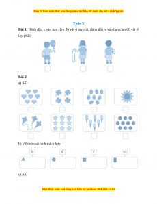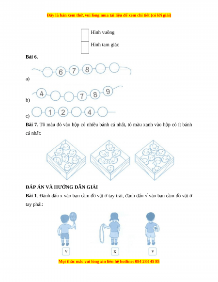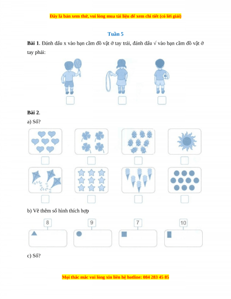 Bài 1. Đánh dấu x vào bạn cầm đồ vật ở tay trái, đánh dấu √ vào bạn cầm đồ vật ở tay phải: Bài 2. a) Số?
