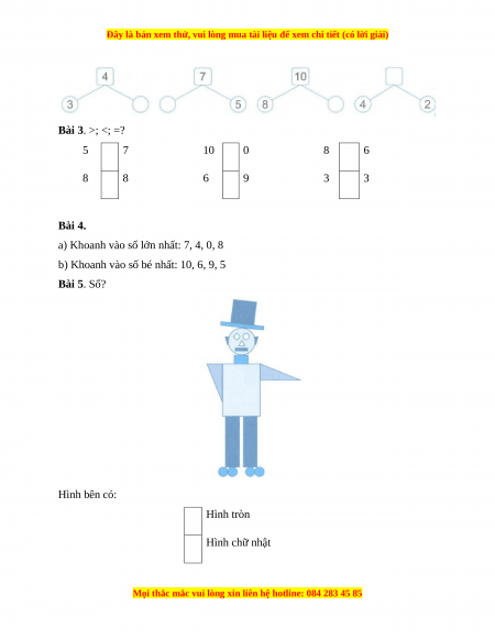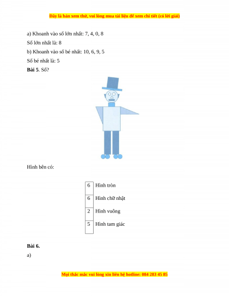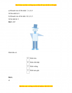 b) Khoanh vào số bé nhất: 10, 6, 9, 5 Bài 5. Số? Hình bên có: Hình tròn Hình chữ nhật
