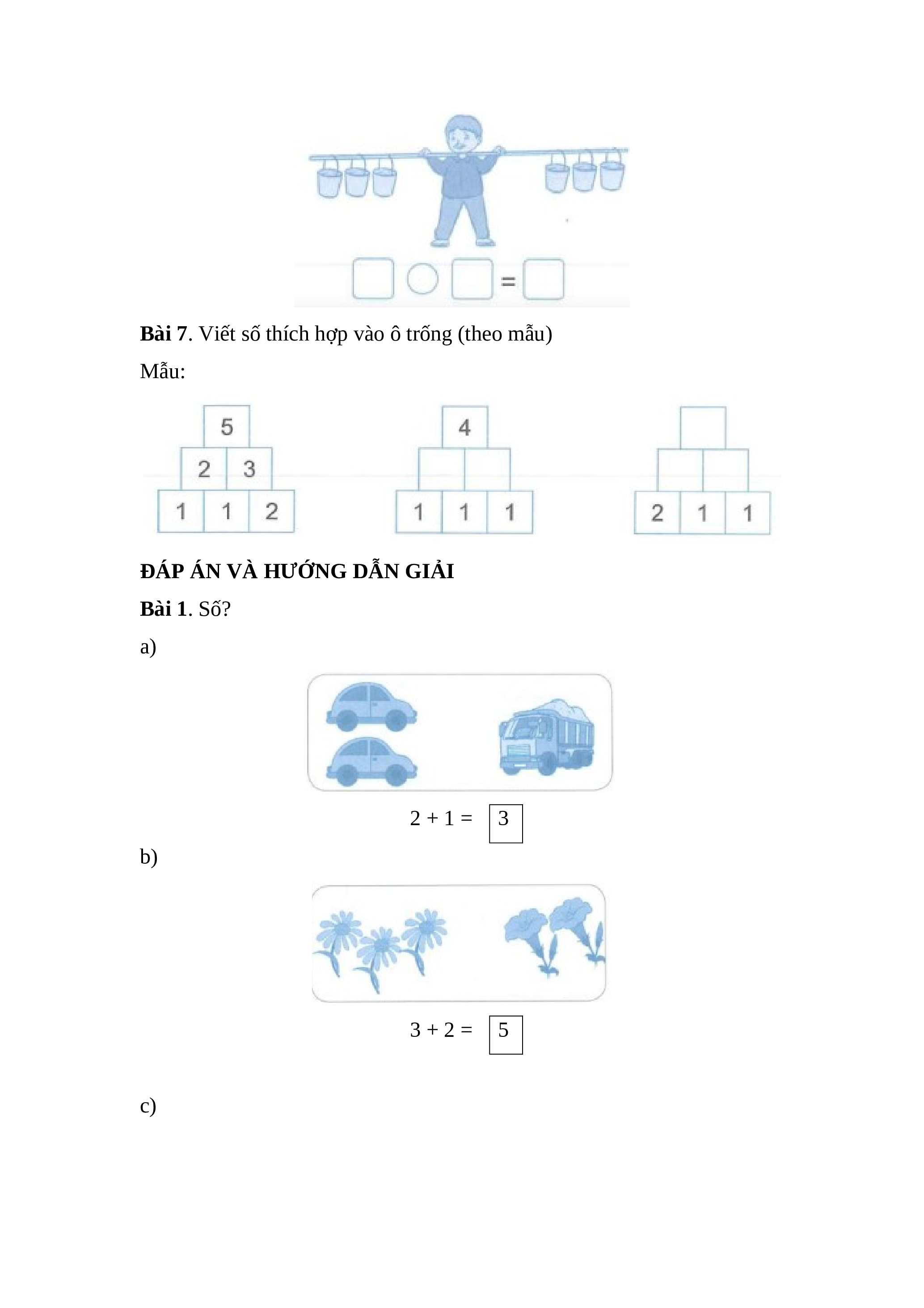 ĐÁP ÁN VÀ HƯỚNG DẪN GIẢI Bài 1. Số? a) 2 + 1 = 3 b) 3 + 2 = 5 c)