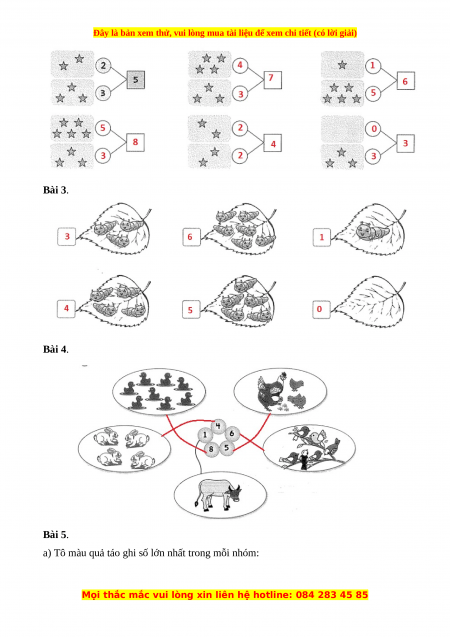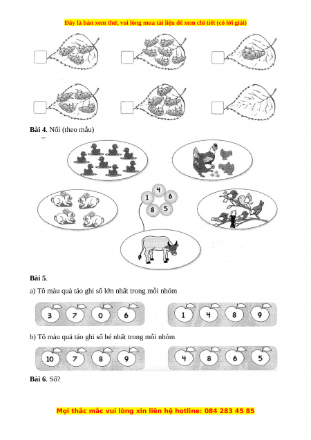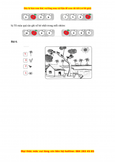 b) Tô màu quả táo ghi số bé nhất trong mỗi nhóm Bài 6. Số?