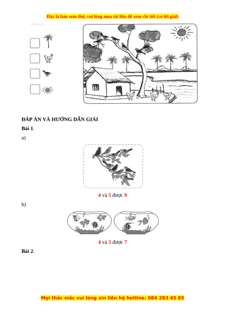 Bài 1. Viết số thích hợp vào chỗ chấm “…..” a) ….. và ….. được ….. b)