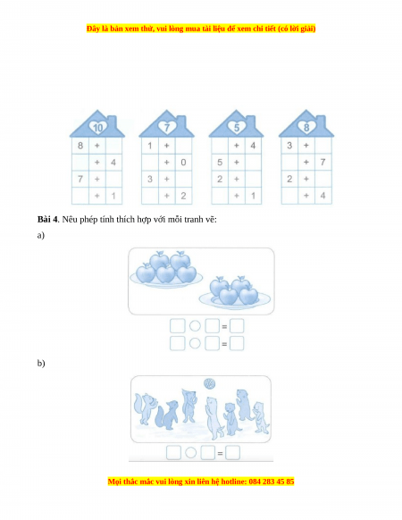 Bài 4. Nêu phép tính thích hợp với mỗi tranh vẽ: a) b)