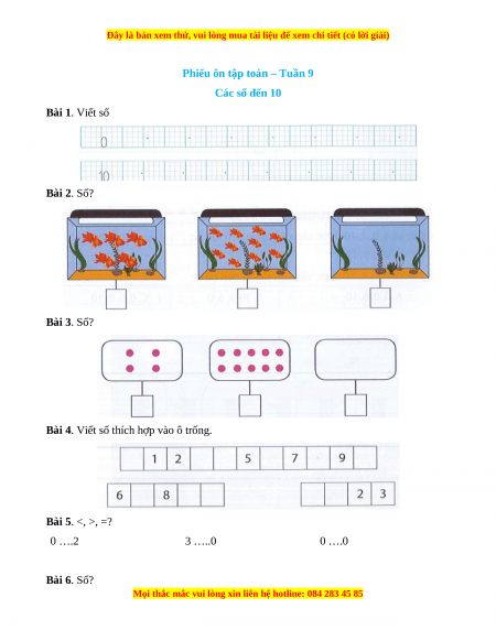 Phiếu ôn tập toán – Tuần 9 Các số đến 10 Bài 1. Viết số Bài 2. Số? Bài 3. Số?