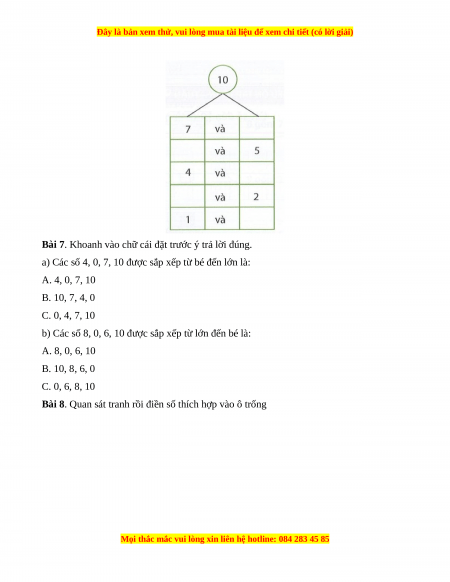 b) Các số 8, 0, 6, 10 được sắp xếp từ lớn đến bé là: A. 8, 0, 6, 10 B. 10, 8, 6, 0 C. 0, 6, 8, 10