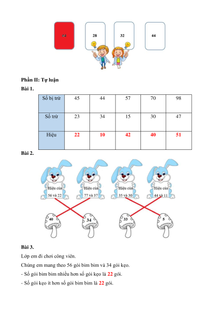5 chục và 5 đơn vị Năm mươi lăm 55 55 = 50 + 5 Bài 2. Số hạng 16 9 21 12 9 30 34 Số hạng 33 10 26 17 20 40 44 Tổng 49 19 47 29 29 70 78 Bài 3.
