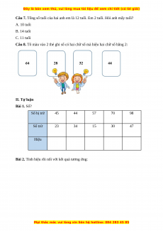 Câu 7. Tổng số tuổi của hai anh em là 12 tuổi. Em 2 tuổi. Hỏi anh mấy tuổi?