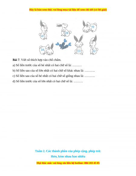 Bài 7. Viết số thích hợp vào chỗ chấm.