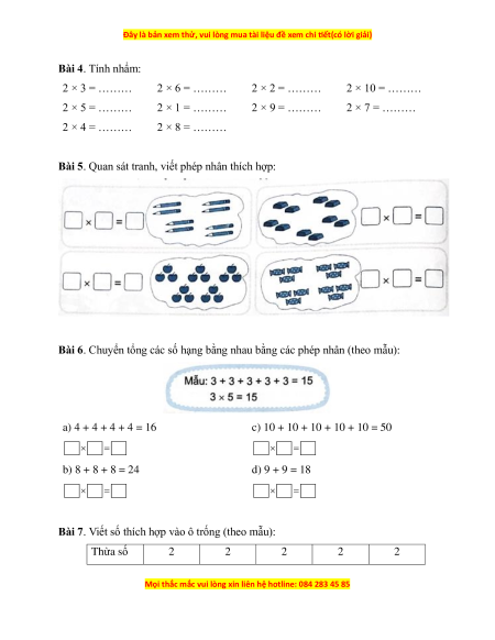 Bài 5. Quan sát tranh, viết phép nhân thích hợp: