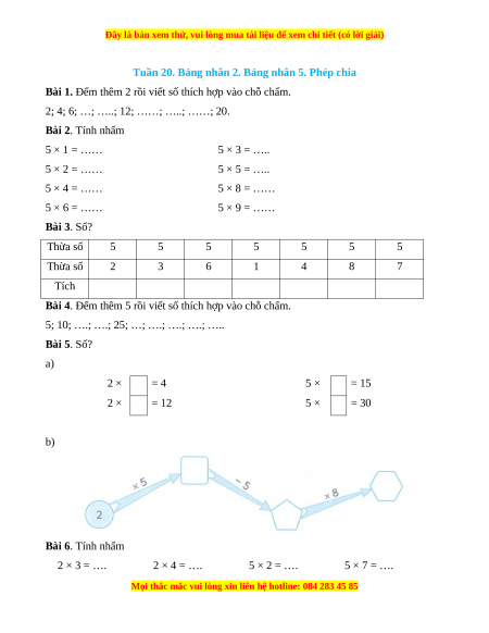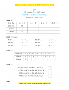 Tuần 20. Bảng nhân 2. Bảng nhân 5. Phép chia