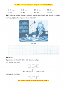 Bài 7. Cô Lan hái được 30 bông hoa hồng. Cô Lan bó thành các bó, mỗi bó 5 bông. Hỏi