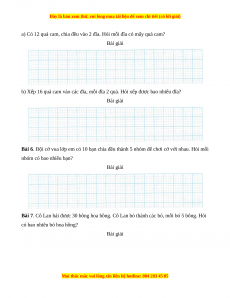 a) Có 12 quả cam, chia đều vào 2 đĩa. Hỏi mỗi đĩa có mấy quả cam? Bài giải