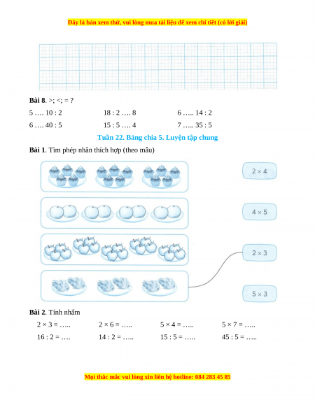 Tuần 22. Bảng chia 5. Luyện tập chung