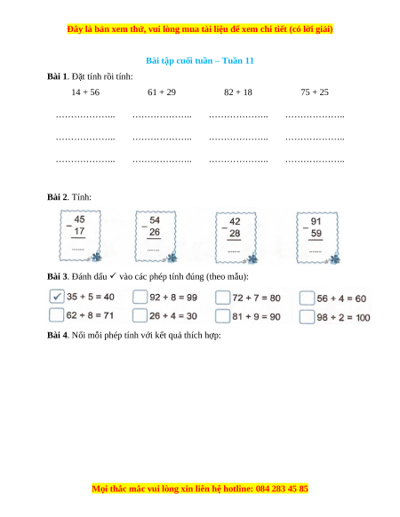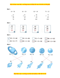 Bài 1. 14 + 56 61 + 29 82 + 18 75 + 25 Bài 2. Bài 3. Bài 4.
