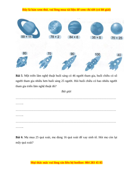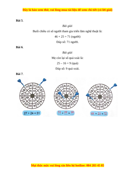 Bài 6. Mẹ mua 25 quả xoài, mẹ dùng 16 quả xoài để xay sinh tố. Hỏi mẹ còn lại mấy quả xoài?