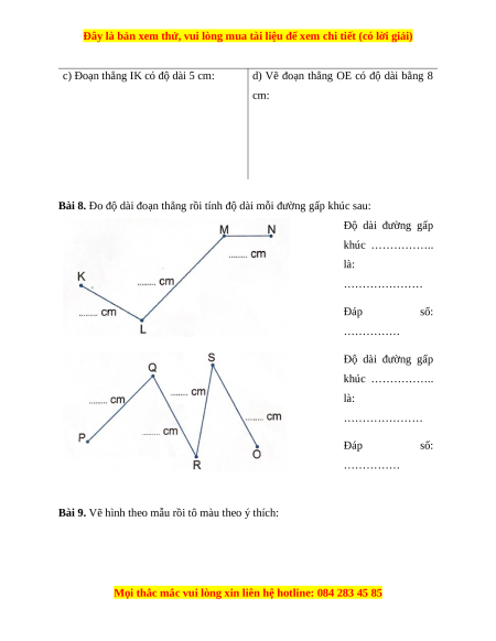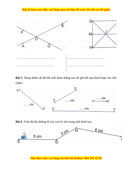 Bài 5. Dùng thước đo độ dài mỗi đoạn thẳng sau rồi ghi kết quả thích hợp vào chỗ chấm: