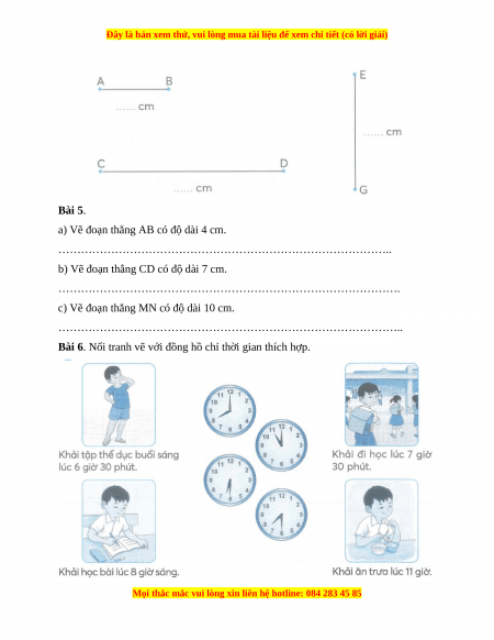 Bài 7. Vẽ thêm kim phút trên mặt đồng hồ để đồng hồ chỉ: