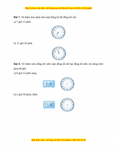 Bài 7. Vẽ thêm kim phút trên mặt đồng hồ để đồng hồ chỉ: a) 7 giờ 15 phút b) 11 giờ 30 phút