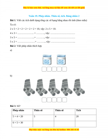 Tuần 19. Phép nhân. Thừa số, tích. Bảng nhân 2
