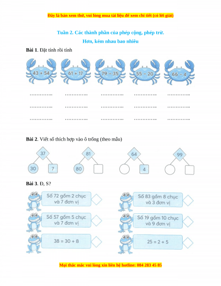 Tuần 2. Các thành phần của phép cộng, phép trừ.