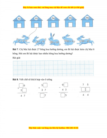 Bài 7. Chị Mai hái được 27 bông hoa hướng dương, em Bi hái được kém chị Mai 6