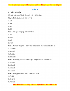 Câu 4. Một bông hoa có 5 cánh. Vậy 6 bông hoa có số cánh hoa là: A. 20 cánh B. 40 cánh C. 30 cánh D. 25 cánh