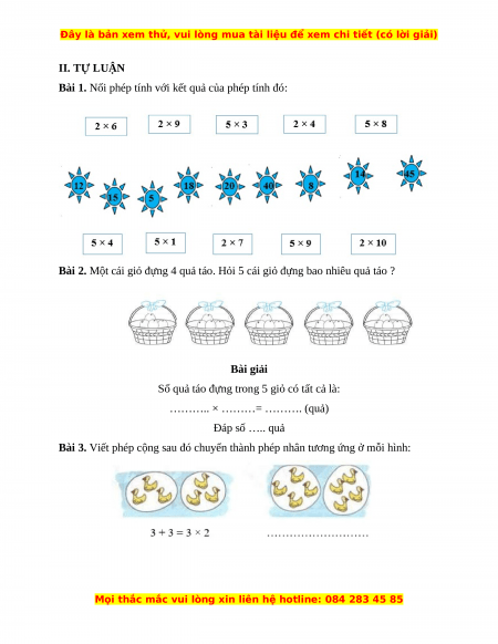 Bài 2. Một cái giỏ đựng 4 quả táo. Hỏi 5 cái giỏ đựng bao nhiêu quả táo ? Bài giải