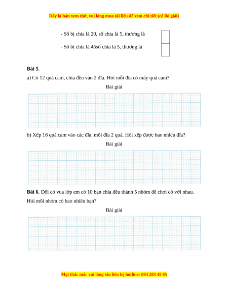 Bài 6. Đội cờ vua lớp em có 10 bạn chia đều thành 5 nhóm để chơi cờ với nhau.